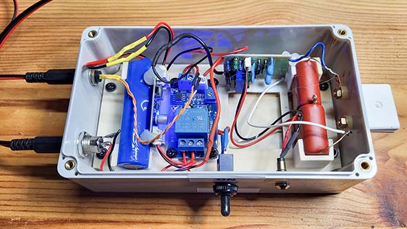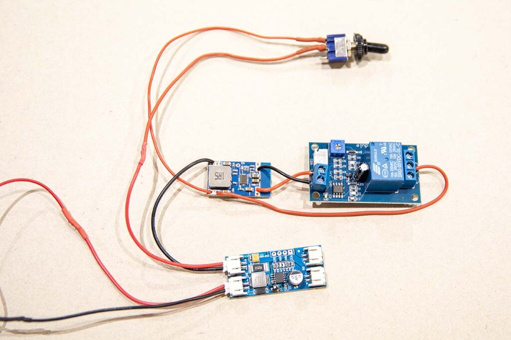 J’ai intégré un interrupteur crépusculaire trouvé sur AliExpress. C’est un module que j’avais déjà utilisé sur une de mes alimentations haute tension, mais alimenté en 5V. Après vérification, il fonctionne parfaitement sous 3,7V, et le relais colle sans problème.