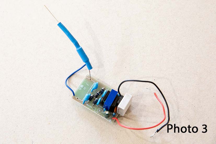 Nous utiliserons donc un câble plus long (comme sur la photo 2) afin de positionner correctement la photo-résistance en fonction de la luminosité autour de votre générateur. Vous pouvez, par exemple, utiliser une paire de fils de réseau ou le fil référencé G6 dans la nomenclature. (D’une longueur de 1 à 2m)