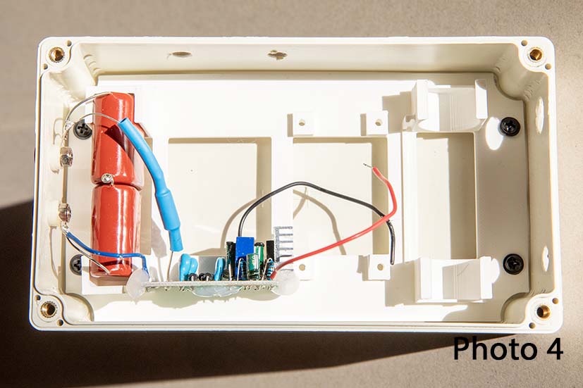 Sur cette photo, je vous présente le branchement de tous les éléments intégrant l’interrupteur crépusculaire. Les références correspondent à celles indiquées dans la nomenclature des composants. Cela devrait vous aider à mieux comprendre l’assemblage des différents éléments.